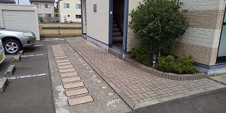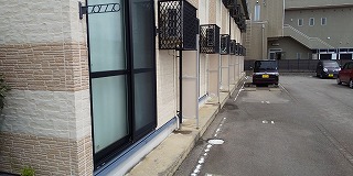 額住宅前