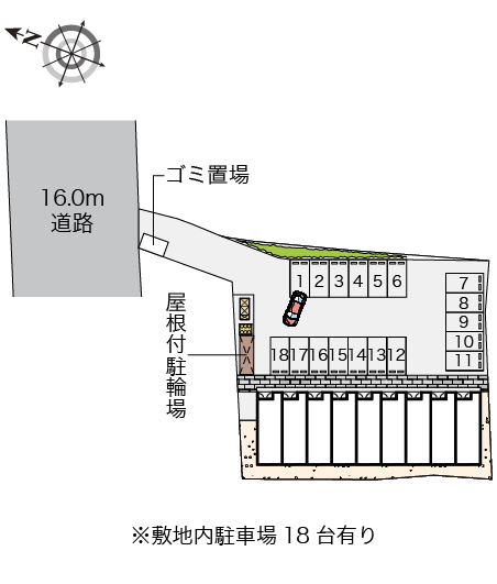 Bãi đỗ xe Có chỗ trống (1 chiếc) 5500 yên Cách 0m từ nhà